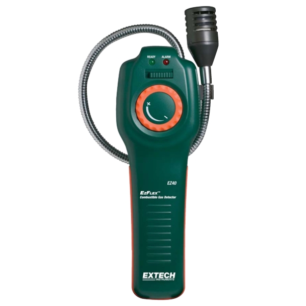 EXTECH ExFlex Combustiblle Gas Detector is a handheld device designed to help identify the presence of combustible gases. It has a flexible gooseneck probe for accessing confined areas and provide visual and audible alerts as gas levels increase